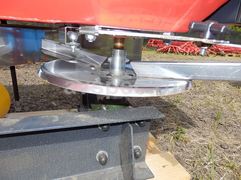Для повышения производительности работы разбрасыватели модельного ряда D-POL оснащены сразу двумя независимыми дисковыми механизмом рассеивания удобрений, которые симметрично расположены в нижней части бункера агрегата. Диски механизма приводятся во вращение системой из трех редукторов – двух угловых и центрального, который при помощи кардана соединяется с валом отбора мощности несущего трактора.