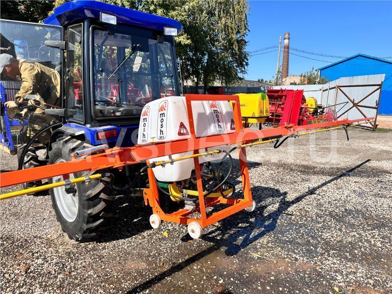 В настоящее время к заказу в нашей компании доступны полевые опрыскиватели серии MOSH с объемом рабочего бака от 200 до 1000 литров. Рекомендованная для производства полевых работ с этими навесными агрегатами мощность трактора составляет не менее 24 л.с.