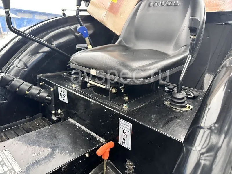 Кабина трактора оснащена кондиционером, системой отопления. Для удобства управления на минитраке установлен гидроусилитель руля, регулируемая колея и полный привод. Сидение комфортное, с ремнем безопасности надежно защищает водителя. Гидравлическое масло подается раздельно.